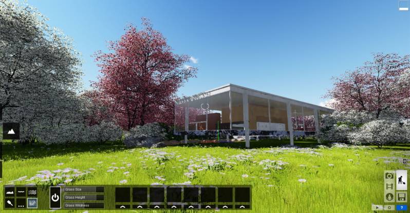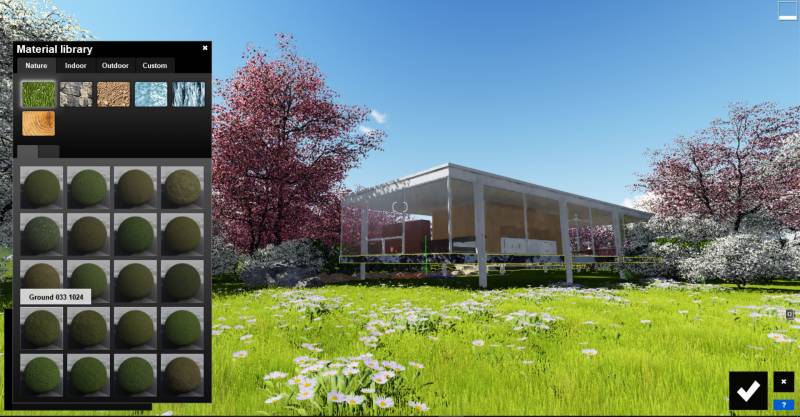 Een andere en simpele uitvoering is ook mogelijk. Klik dan bij de materialenbibliotheek op 'Nature' en dan de bovenste gras. Hier zie je verschillende mogelijkheden om een grasveld te creëren. Dit materiaal kun je alleen niet geavanceerd veranderen.