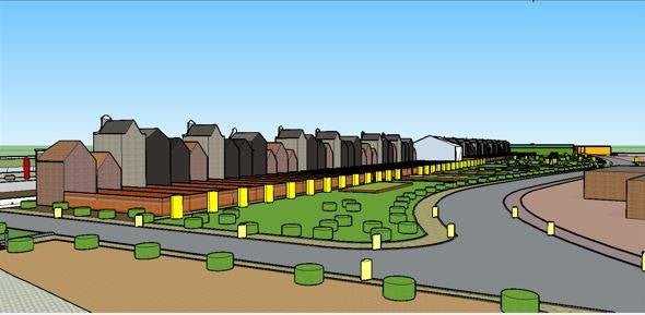 Een aantal afbeeldingen genomen uit het SketchUp bestand. De cilinder vormige objecten zijn componenten die als voorbereiding dienen voor het overzetten naar Lumion. In Lumion kunnen de componenten in een keer vervangen worden voor objecten zoals bomen en lantaarnpalen.